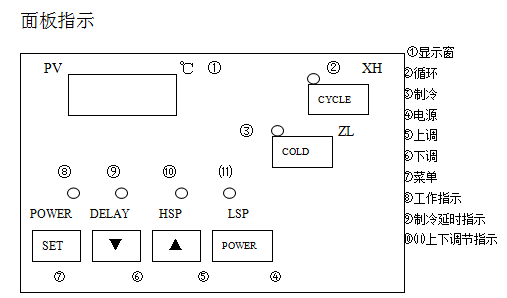 ③說明定時(shí)采用倒計(jì)時(shí),定時(shí)結(jié)束,SV窗顯示字樣,這時(shí)壓縮機(jī)停止工作,再設(shè)定時(shí)間或重新開總電源,即可重新開始工作。注:在設(shè)定狀態(tài),當(dāng)不按鍵時(shí)間超過1分鐘,自動(dòng)退出到正??刂茽顟B(tài)。