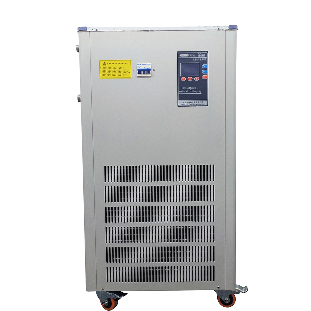低溫冷卻液循環(huán)泵的工作原理:是以冷卻液(常用冷卻液為水,低溫常用合成冷卻液,如乙二醇的水溶液等,以下簡稱冷卻液或簡稱“水”)為傳熱介質。將其它需要冷卻的儀器或設備產(chǎn)生的熱量傳遞出來,通過制冷系統(tǒng)將熱量散發(fā)到設備外部,從而保證設備在正常的溫度范圍內工作。裝置與儀器設備之間依靠裝置內水泵壓力形成封閉介質循環(huán),由溫度傳感器檢測介質溫度,實施對制冷機的控制。